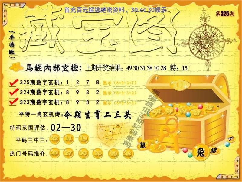| 324期:平特藏宝阁玄机 【今期生肖找太子】 解:今期生肖找太子,平特猴兔 特码范围评估:02-29 推荐平码:10.17.04.28.30.19 |